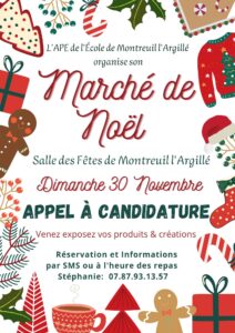 L’APE de l’Ecole de Montreuil l’Argillé organise son Marché de Noël